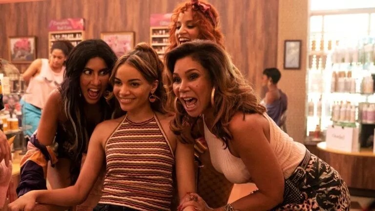 Leslie Grace (center) plays Nina Rosario in the film adaptation of In the Heights.