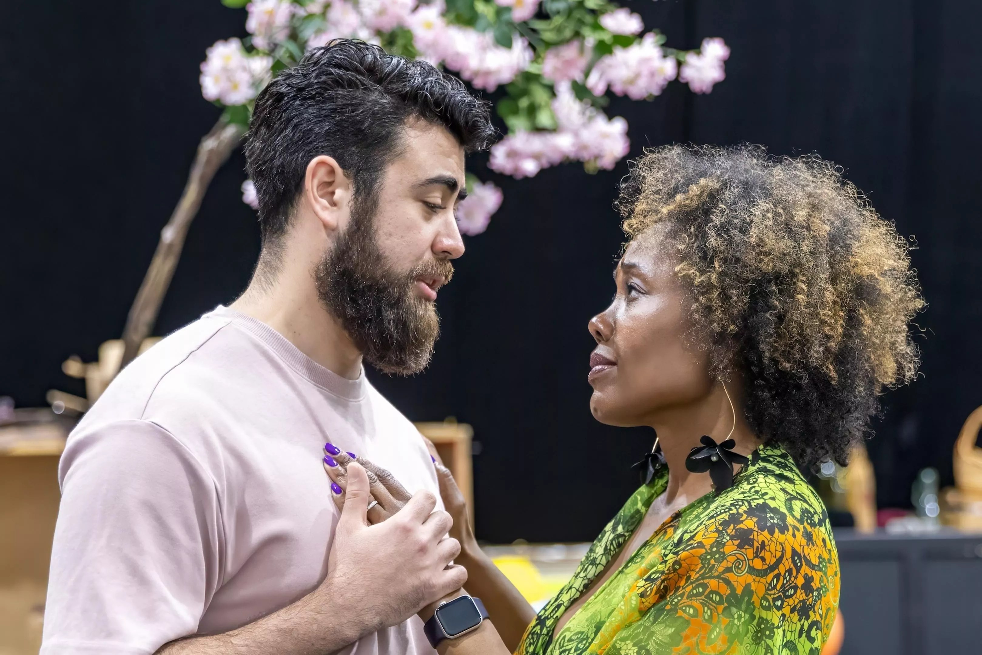 Eleomar Cuello as Silvio and Kearstin Piper Brown as Nedda in rehearsal for Florida Grand Opera’s 82nd-anniversary production of I Pagliacci.