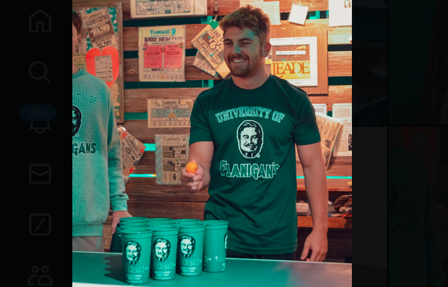 The “University of Flanigan’s” forest green T-shirt is selling out fast.