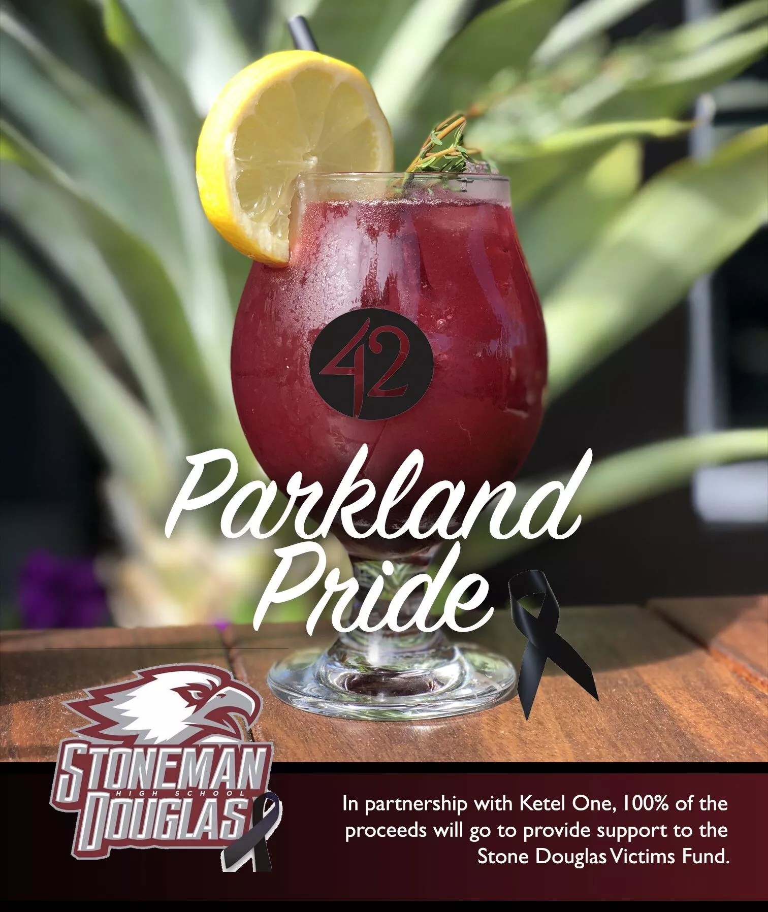 One of them is Tap 42’s Parkland Pride. The cocktail, made with Ketel One vodka, blackberry purée, lemon, and thyme, will be available March 1 through 14 and will be served at Tap 42’s locations in Coral Gables, midtown Miami, Boca Raton, and Fort Lauderdale.