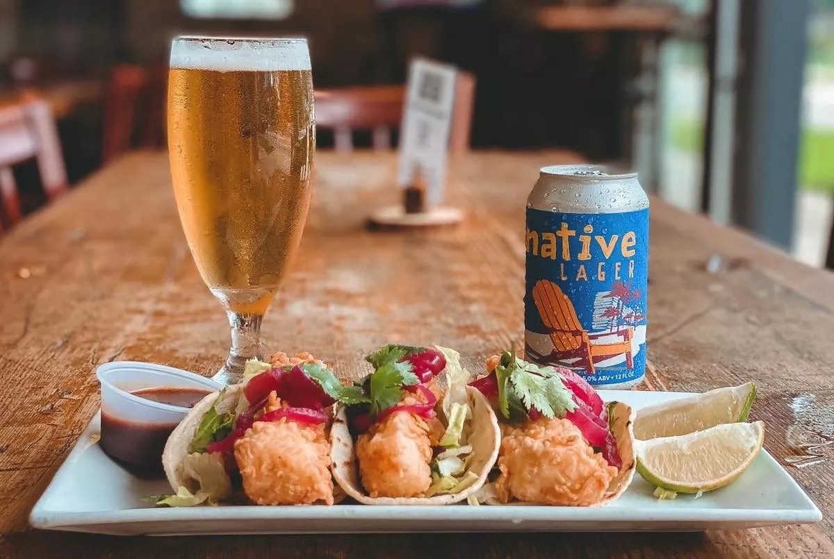 Fish tacos and a beer at Tarpon River Brewing.
