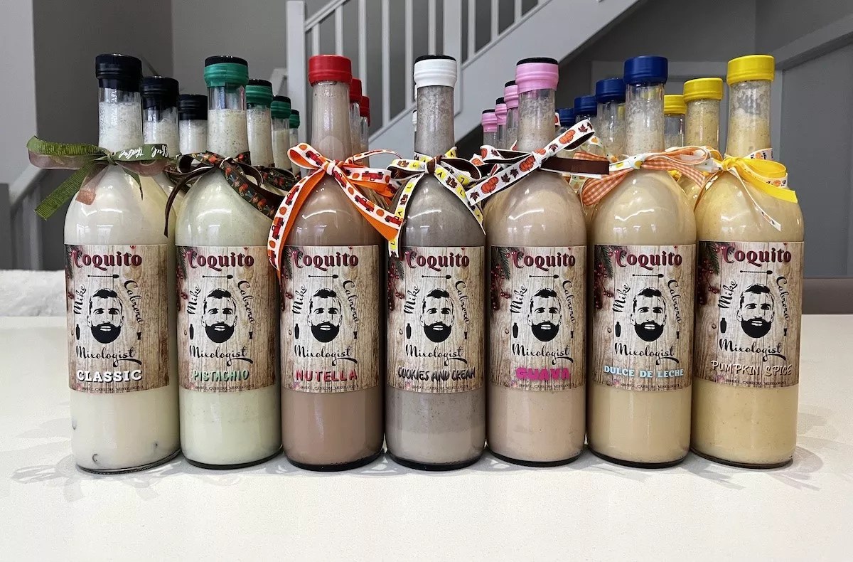 Fort Lauderdale bartender Mike Cabrera recently began batching up his version of coquito, offering locals a chance to sample his unique recipe. Cabrera says he learned to love coquito from his mother, who immigrated from Cuba to Puerto Rico before coming to Miami. Although she has her version of coquito, Cabrera has given his recipe yet another unique twist, offering a plethora of unique flavors, seasoning with fresh-grated spices, and blending the liquid ingredients to ensure a smooth, velvety texture that’s just right. Flavors are created using fresh ingredients and include pistachio, cookies and cream, Nutella, Reese’s Peanut Butter Cup, and pumpkin spice. Bottles are priced at $25 (classic), $30 (flavored), and $35 (limited-release flavors). Local pickup is available from 4-8 p.m. in Fort Lauderdale seven days a week through January. Order via Instagram.