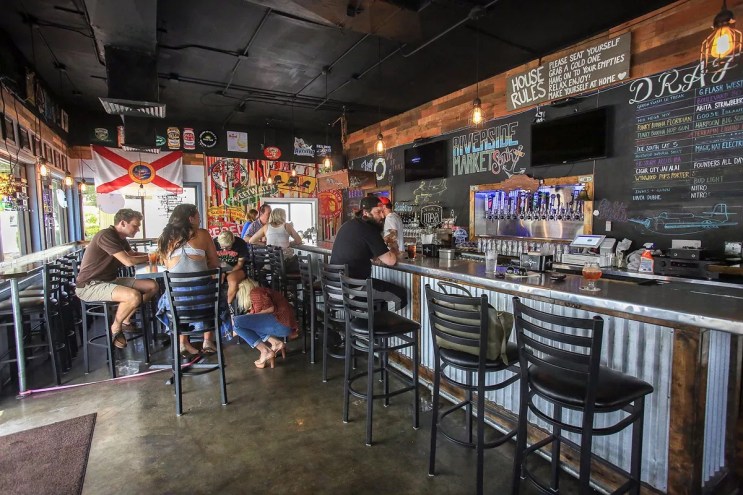 Riverside Market Cafe South is a craft beer hangout offering pizza, sandwiches, burgers, salads, specialty sodas and more.