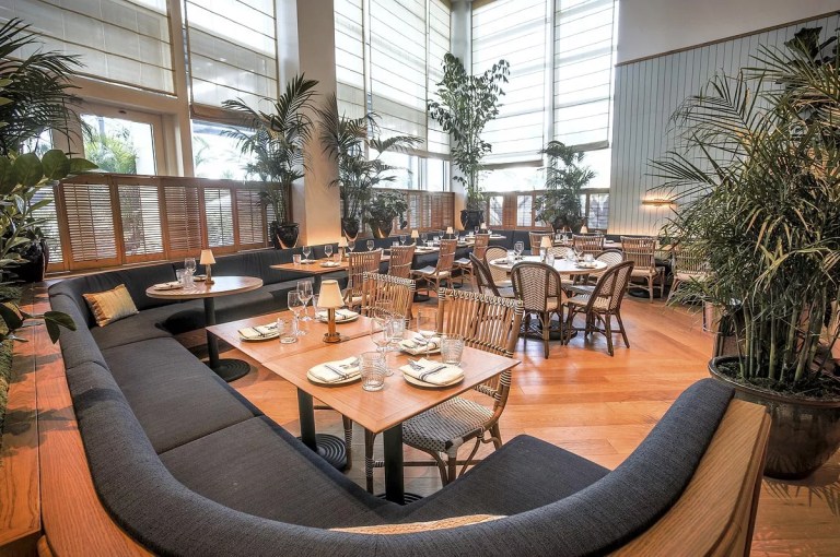 Point Royal, which opened in February 2017, sits on the ground floor of the newly renovated Diplomat Beach Resort. The restaurant is billed as coastal American, the type of place you can stop by for a burger and beer or for some oysters and a glass of wine. Once the site of the hotel’s breakfast buffet room, Point Royal is a place you might expect panoramic ocean views. But instead, floor-to-ceiling windows overlook a crowded patio. If you dine at night, it’s dark, so the lack of view doesn’t matter much. The decor evokes Old Florida, Cuba, and the galley of a yacht. Paneled walls look like a boat’s hull, tiny tables are etched with compass designs, and massive potted trees and plants arch over tables and doorways. When it comes to the food, certain aspects are recognizable from other Zakarian establishments: generous and complimentary bread service, a plethora of crudo options, handmade pastas, and soups. Where Point Royal really hits its stride is the more entr