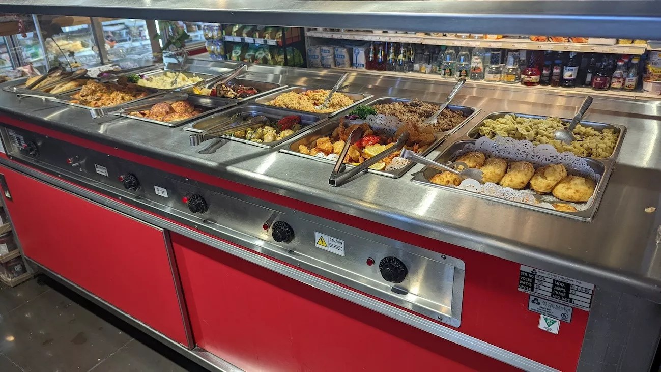 The hot food counter at Matryoshka Deli Food